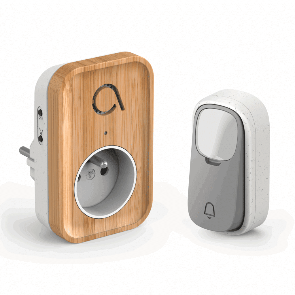 Die meisten unserer Modelle bestehen aus einem Türklingel, der mit einer Batterie betrieben wird oder an eine herkömmliche Steckdose angeschlossen werden kann, und einem Rufknopf mit Batterie oder ohne Batterie. Im letzten Fall handelt es sich um die „Kinetic“-Technologie: Die mechanische Energie, die durch den Druck des Fingers ausgelöst wird, erzeugt elektrische Energie.