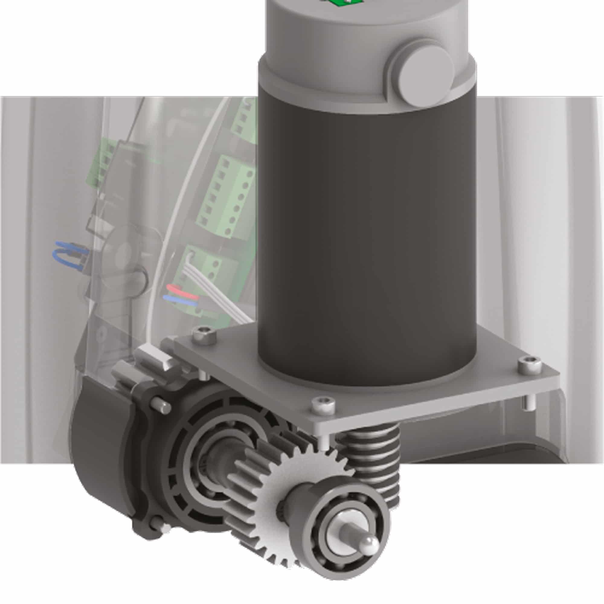 - το γρανάζι του κινητήρα του είναι κατασκευασμένο από μέταλλο. Συνεπώς, είναι απόλυτα κατάλληλο για την υποστήριξη του βάρους συρόμενων θυρών έως 500 kg.