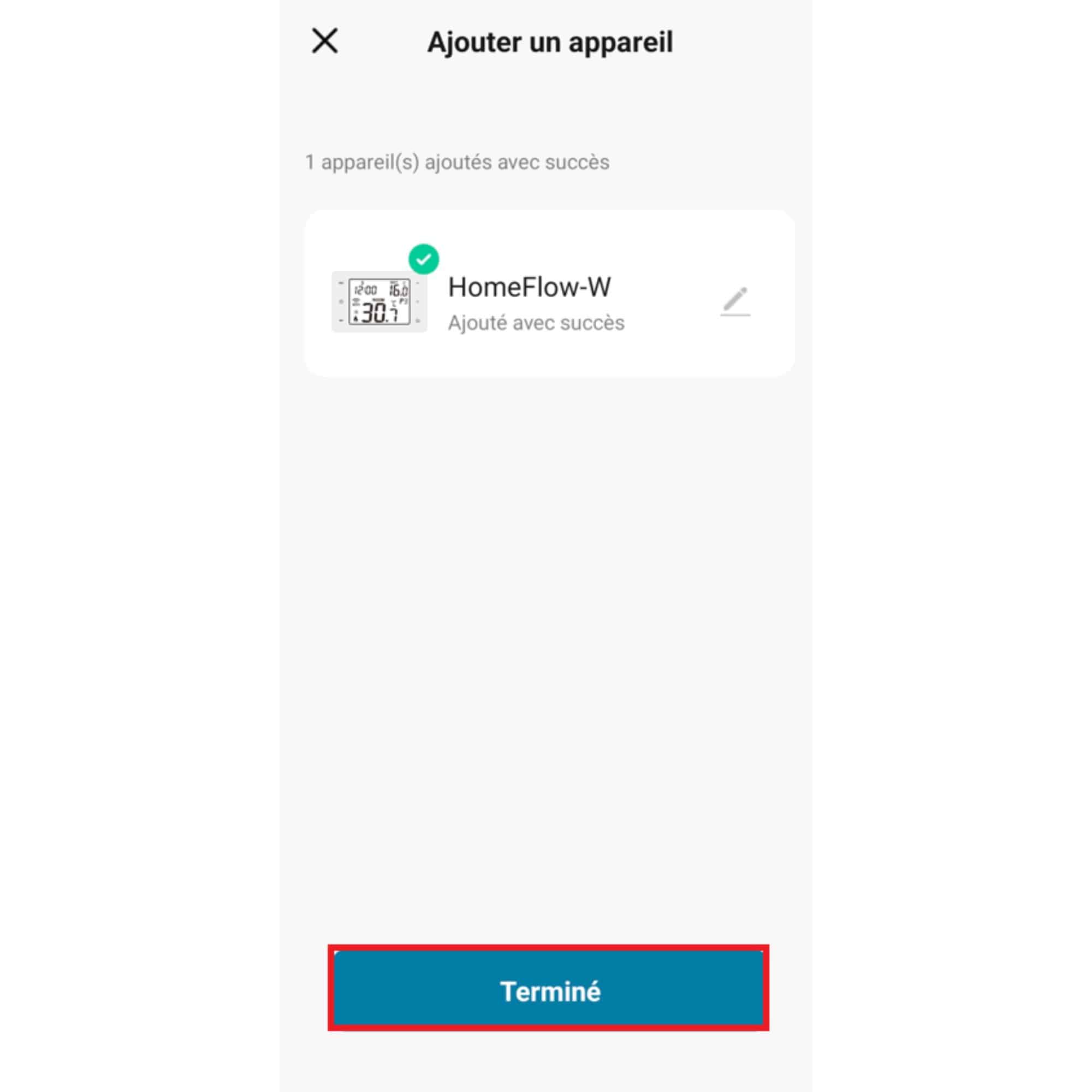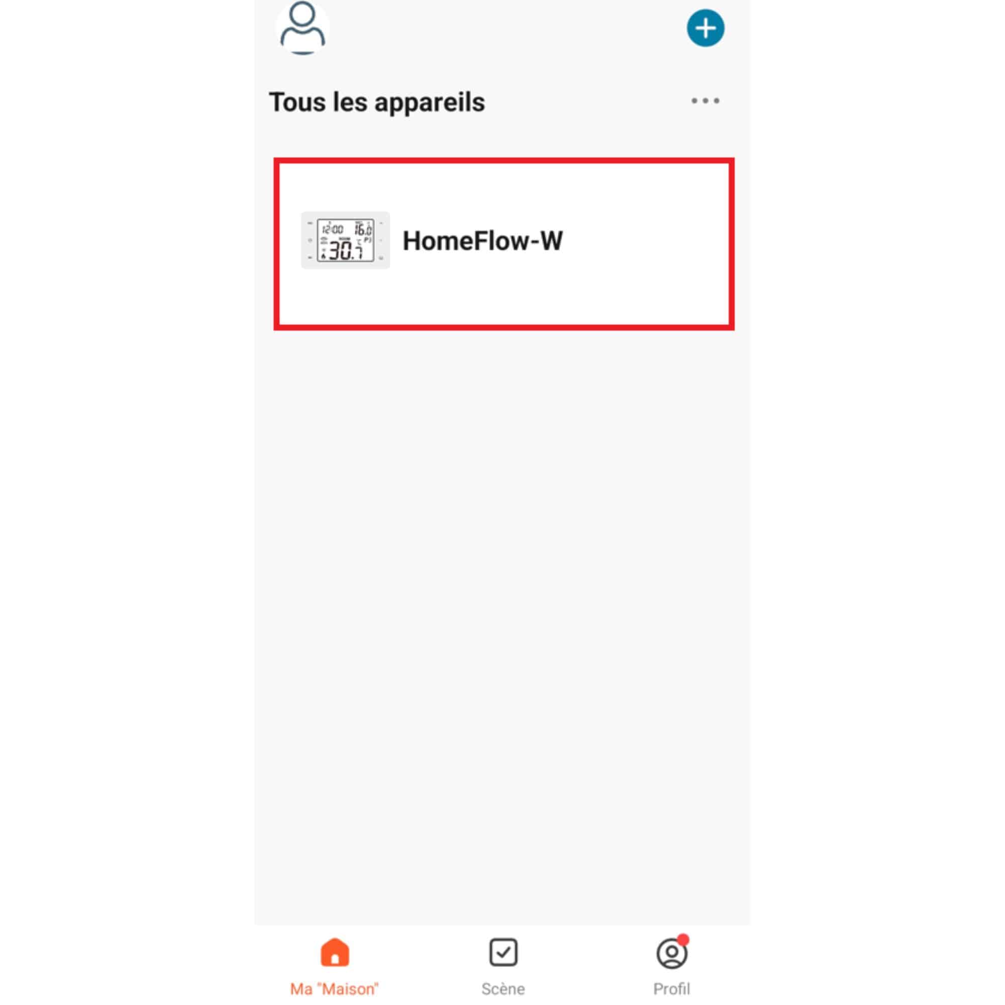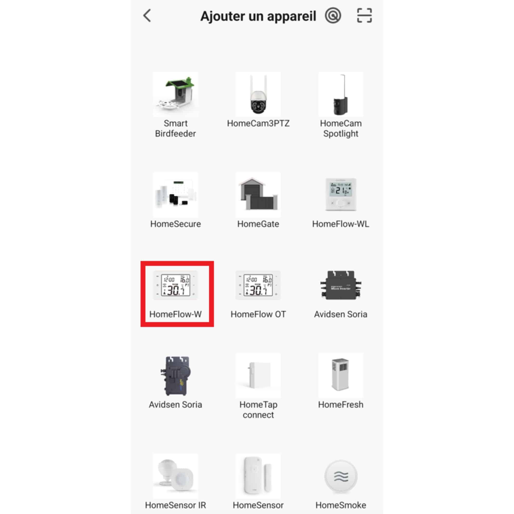 Sélectionnez le thermostat « HomeFlow-W » dans la liste des appareils.