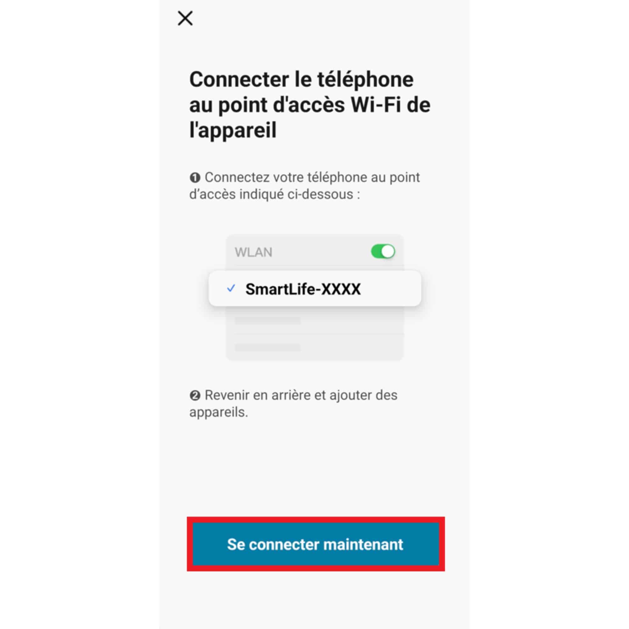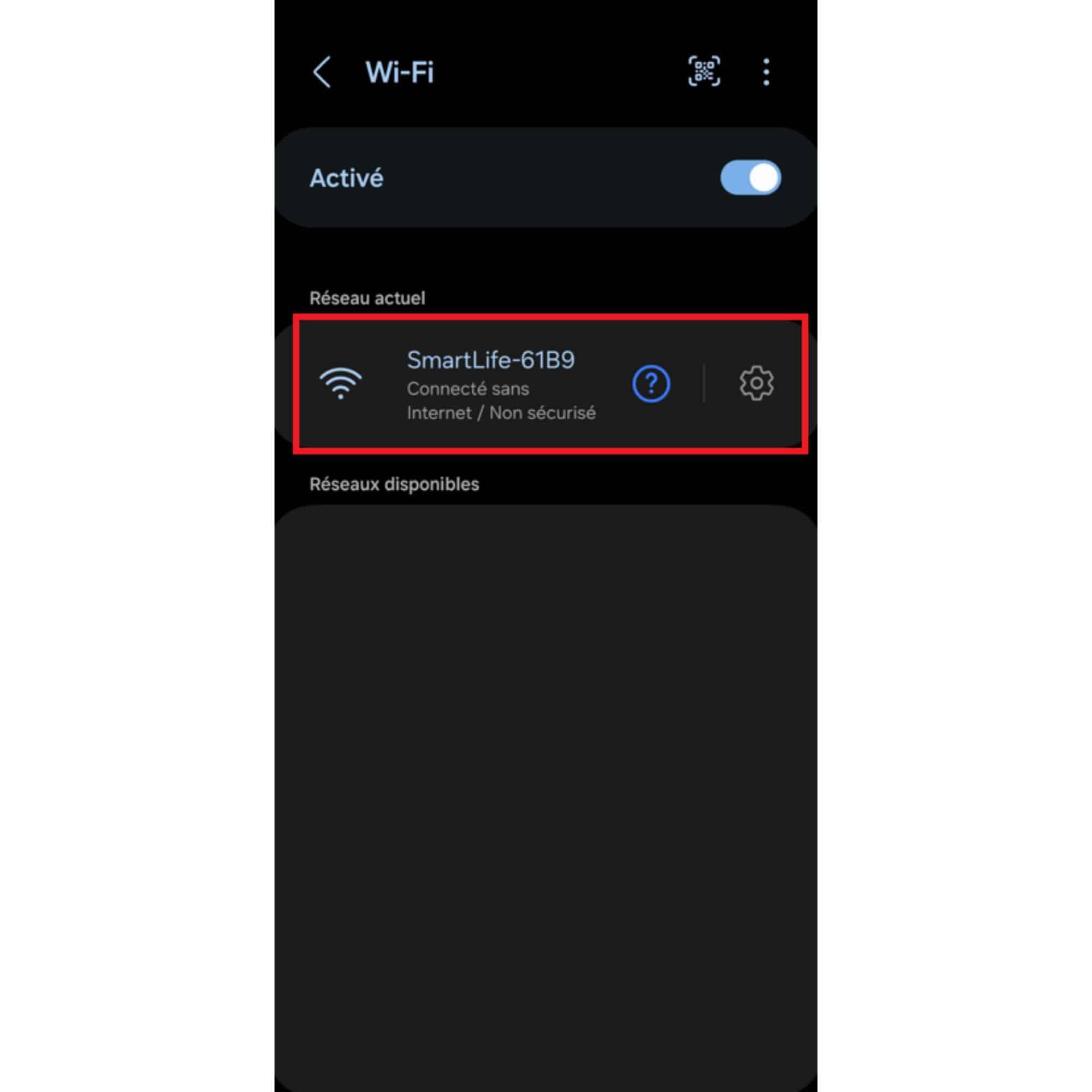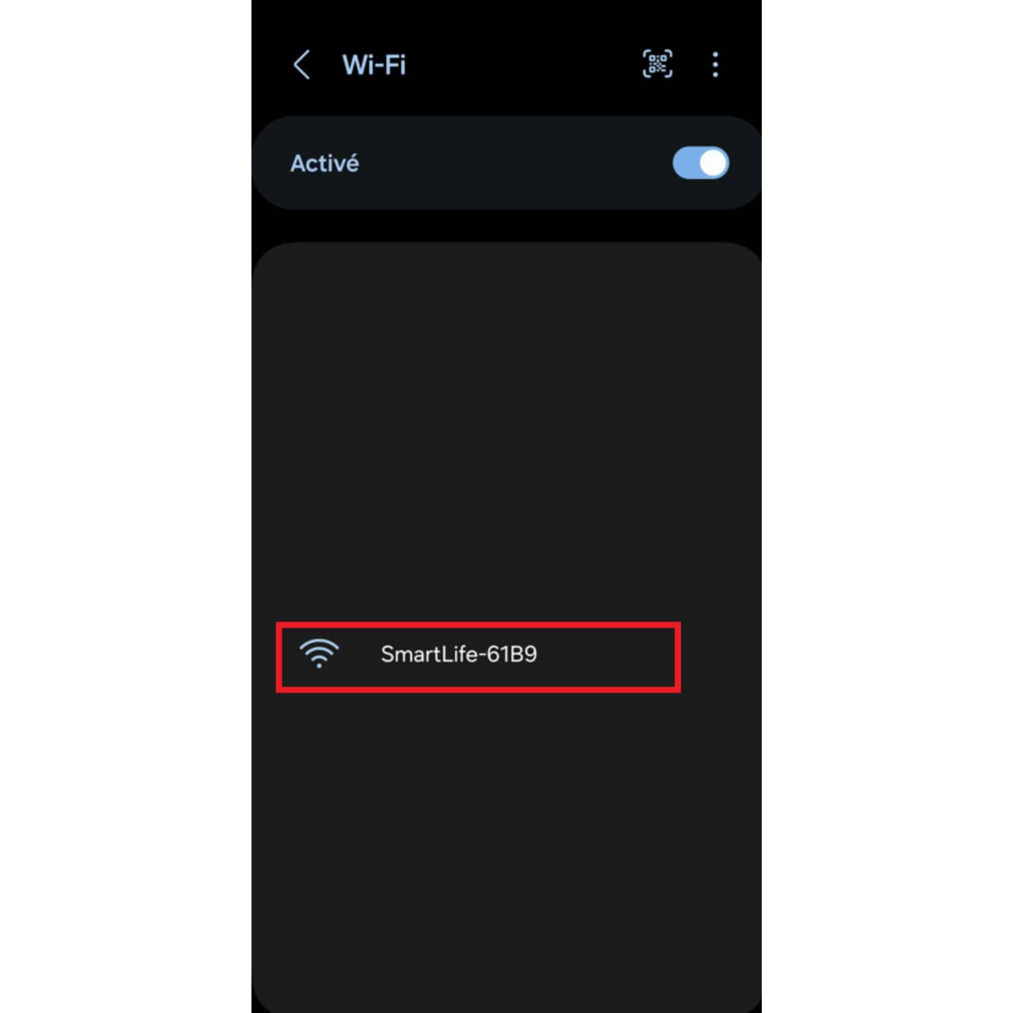 Votre smartphone doit détecter un émetteur Wifi nommé SmartLife – XXXX
