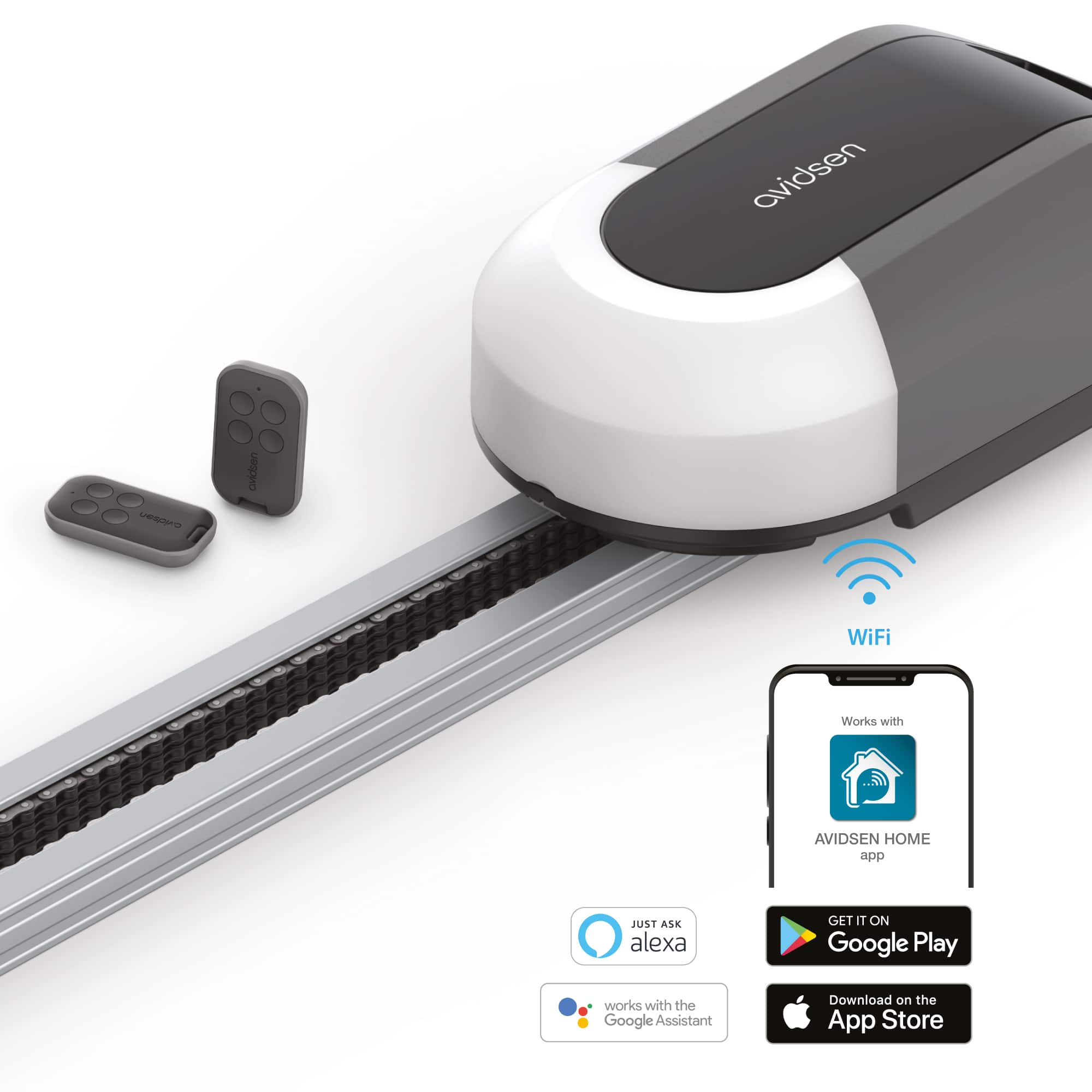 Ouvrez et fermez votre porte de garage via l’application Avidsen Home et les assistants vocaux Google Home et Alexa.