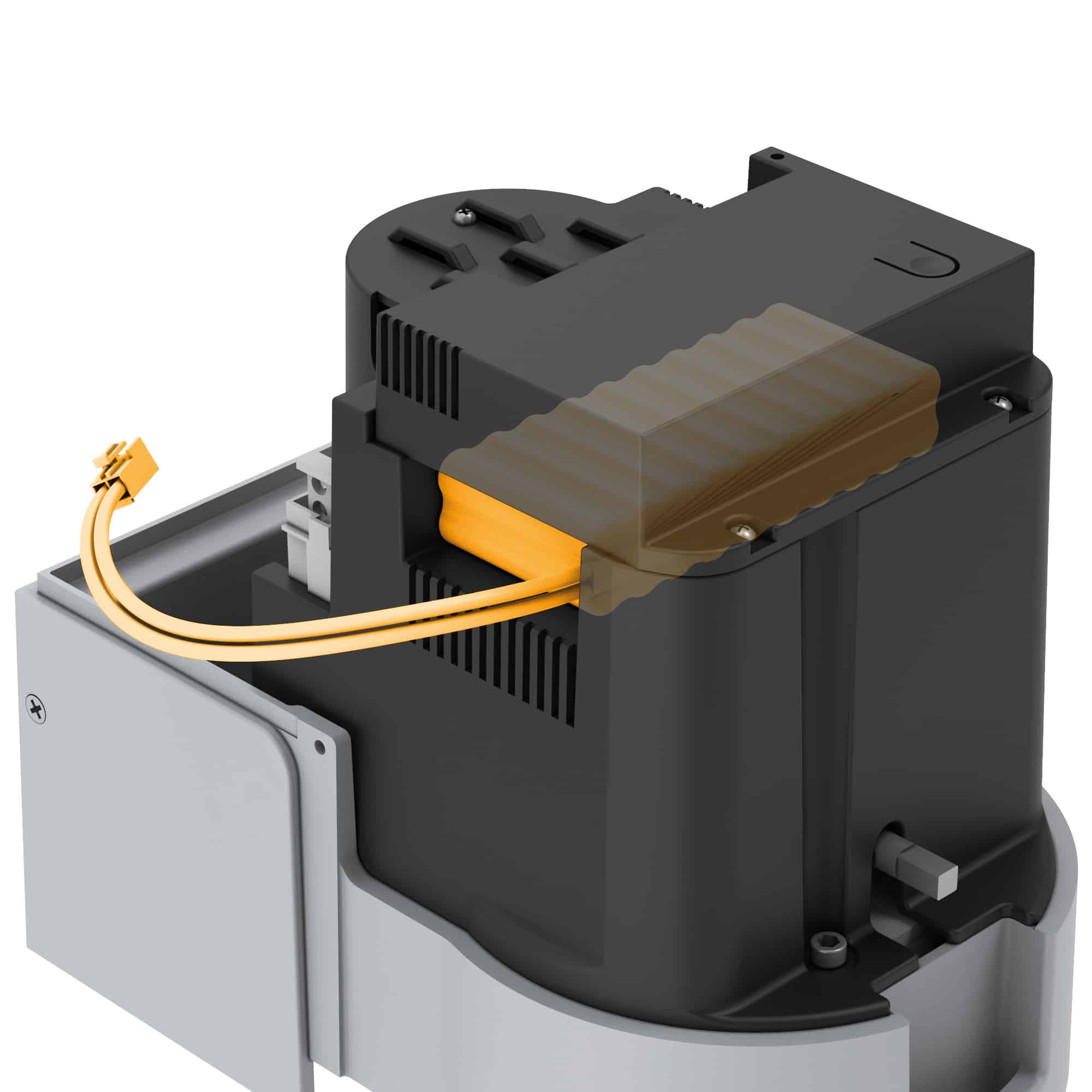 Placez votre batterie de secours dans le coffret de votre bloc moteur. Dans le cas de la gamme Extel Umii, un espace est prévu à cet effet pour glisser la batterie.
