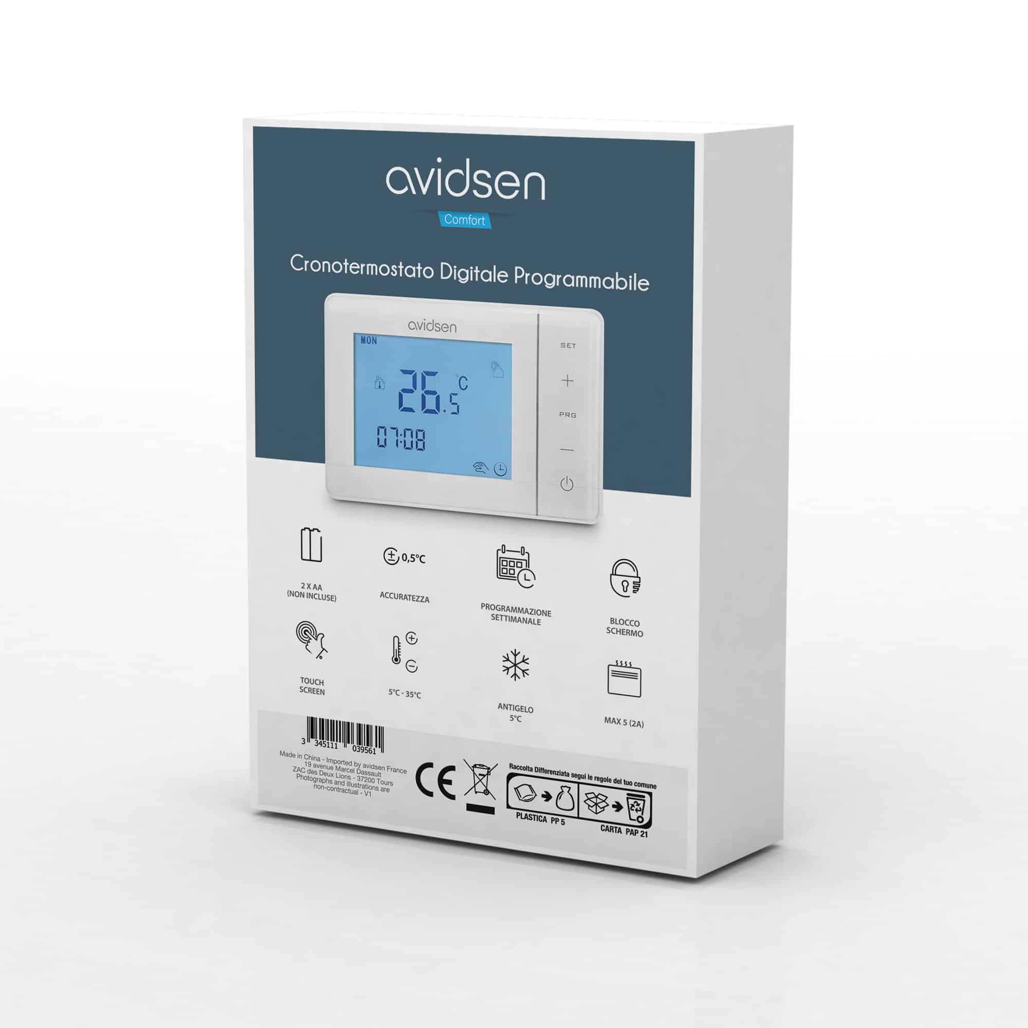 Controlla la tua caldaia o l’aria condizionata con questo termostato digitale programmabile a filo di Avidsen. È preciso con un’approssimazione di 0,5°C e facile da impostare per una programmazione settimanale che garantisca il massimo comfort a casa tua.