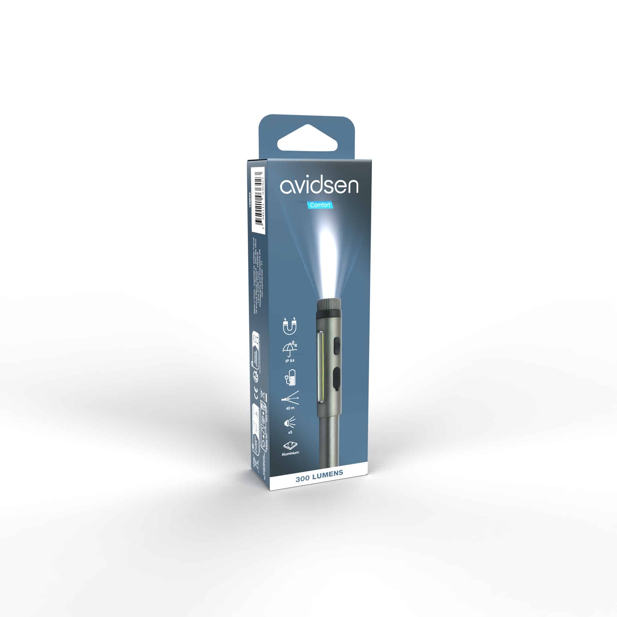 Nunca mais vais querer ficar sem esta lanterna prática e compacta com 300 lúmenes da Avidsen. Recarregável, possui cinco modos de iluminação perfeitos para situações de emergência e actividades ao ar livre.